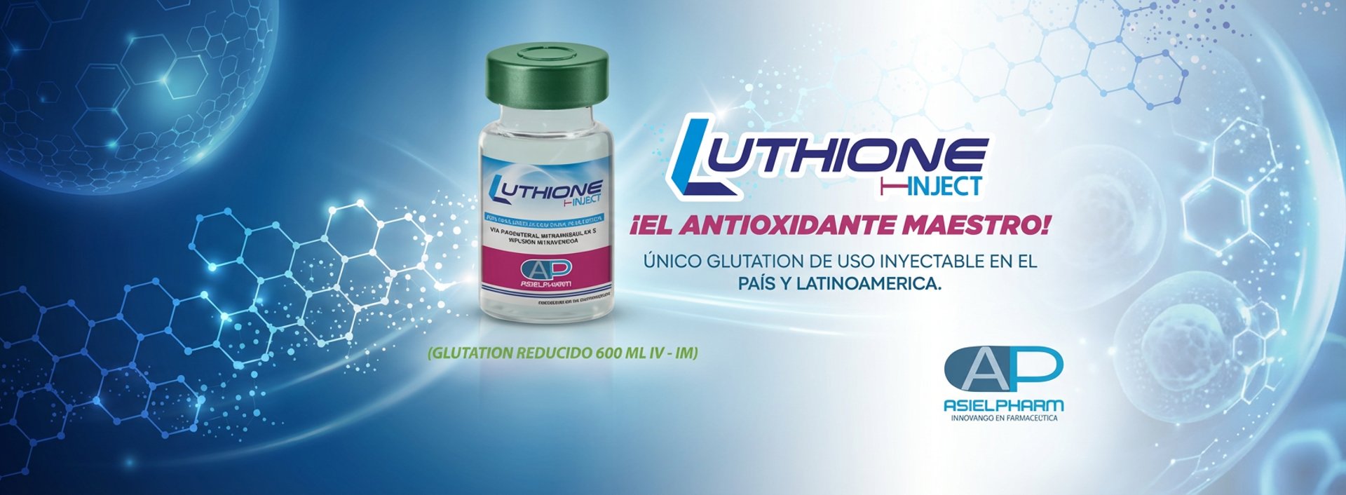 Luthione® es glutatión reducido en su forma más pura y biodisponible (99%), un antioxidante esencial que tu cuerpo produce naturalmente para proteger, desintoxicar y energizar cada célula.