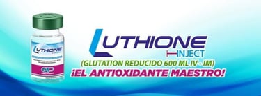 Luthione® es Glutatión Reducido de alta pureza (99%) en forma inyectable (IV/IM), conocido como el "Antioxidante Maestro" de tu cuerpo.